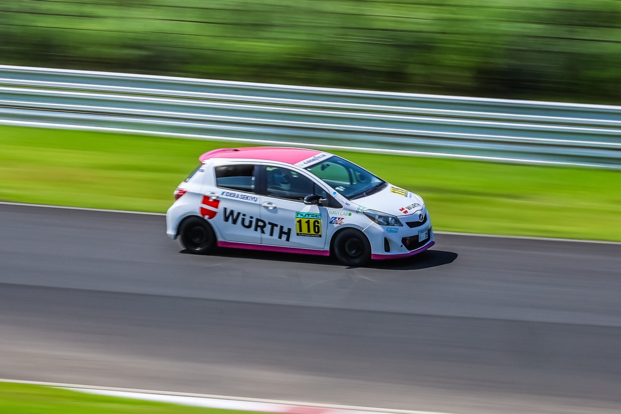 TOYOTA Vitz(NCP131 Vitz RS Racing)を2台保有しており、サーキット専用車両としてレンタルをご案内しております。これらの車両には、2024年・2025年オートポリス ゴールドカップチャンピオンの実績をもとに培ったノウハウを反映しており、走行性能と実戦経験が詰まった一台となっています。サーキット走行に限定してご利用いただけるほか、公式戦への参戦も可能です。これから本格的にモータースポーツを始めたい方から、競技参加を見据えて走行したい方まで、目的に応じたご活用が可能です。